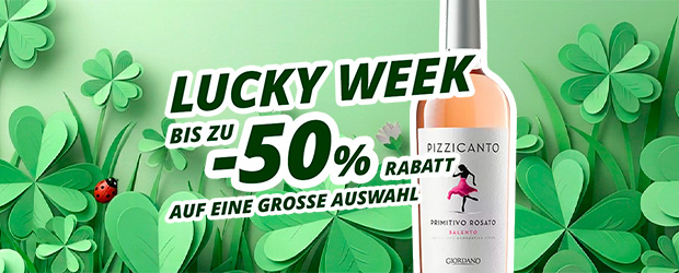 Schau dir diese Auswahl an, schau dir diese Rabatte an und schau, wie gut dir diese Lucky Week steht: bis zu 50 % Rabatt auf alles, was du siehst, und 100 % mehr gute Laune für dich als Weinliebhaber, der immer auf der Suche nach Angeboten ist. Du hast sie gefunden: Was für ein Glück! 🙂